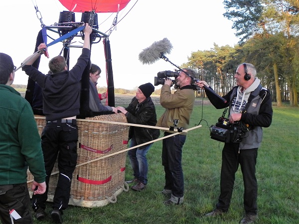 Andrea war sofort bereit. Noch im Korb und nach der Riesenüberraschung gab sie ihre Einwilligung zum Lebensbündnis: „Ja, ich will!“. Auch Dunker Müller hatte diese Sternstunde gut vorbereitet: Nach einem langen Kuss im Korb aus Weidengerten unter der riesigen Ballonhülle in etwa 500 Meter Höhe bei zirka 30 km/h Fahrt von Andrea und Jens in schwindelnder Höhe ließ der Ballonpilot einen Sektkorken knallen. Ein Prosit auf diesen Heiratsantrag, arrangiert wie kaum ein anderer!